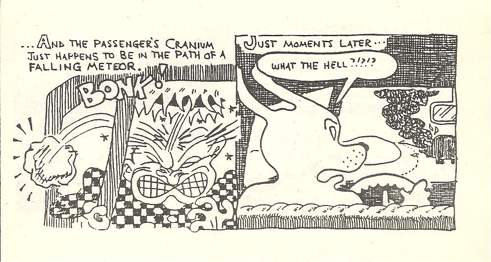 Because the comic was originally drawn for the digest size, there happened to be extra space in the margins. This was filled by employing an academic Michael had met in a bar. Dr. Whidbey interviewed me once on Michael's front porch. I recall he was drinking something that smelled like high octane mango, and wore black socks with his sandals. Howerton College, a private school somewhere up north, went under awhile back due to bad investments. Or maybe the whole thing was just a dream.